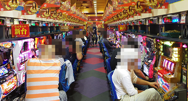 店内に入ると、たくさんのプレイヤーが遊技を楽しんでおり、いくつもの場所に鮮やかな光景が広がっていた。