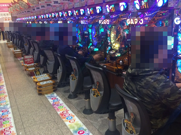 18時を過ぎる頃、4円パチンコでは「CR牙狼 魔戒ノ花」の盛り上がりがもっとも目立っており、たくさんの笑顔が広がる空間となっていた。