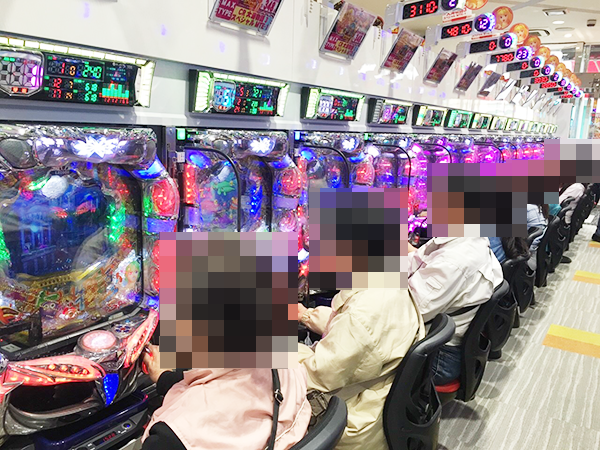 ホール内の様子をみてみると、パチンコとパチスロを問わずに、たくさんのプレイヤーでにぎわっていた。