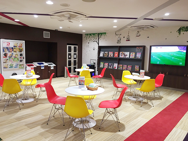 レストコーナーにはひとり掛け用の椅子が多く設置してあり、どのタイミングでもくつろげるといったスペースが確保されていた。