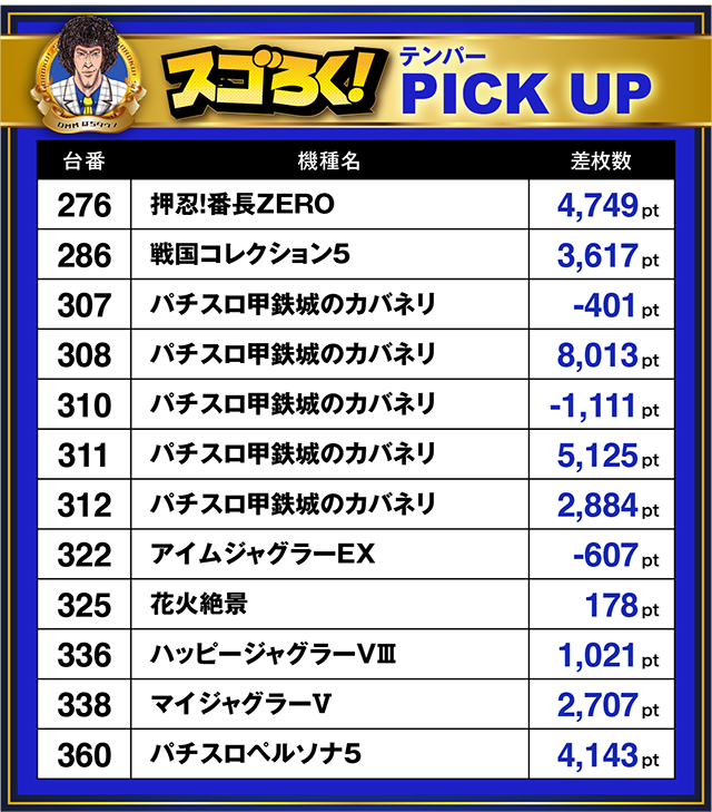 どの台も3,000pt以上でこの日を終えていたぜ。