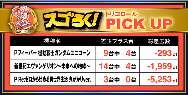 プレイヤーは心から遊技を楽しめていたようで、4台がプラスでこの日を終えたわ。