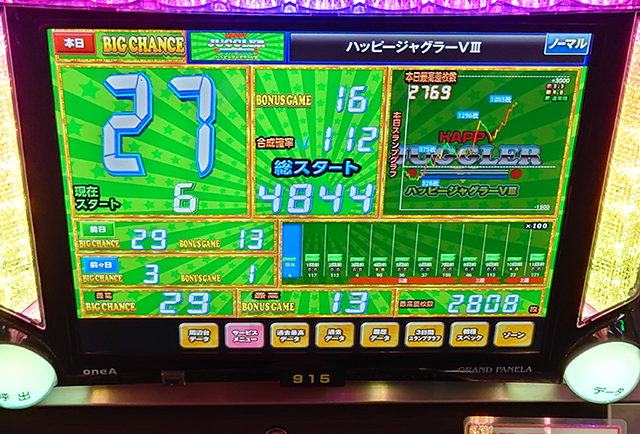 楽しげな姿だけでなく、ボーナス回数が35回以上の台も確認している。