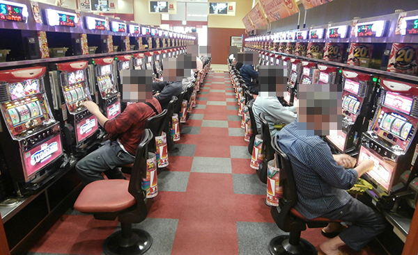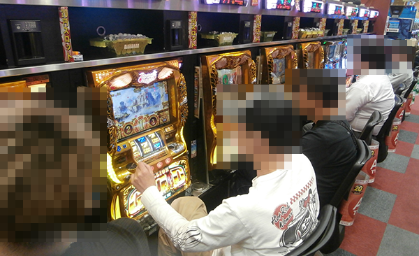 16時を過ぎた頃の20円パチスロでは、「バジリスク~甲賀忍法帖~絆」や「ミリオンゴッド-神々の凱旋-」などのAT・ART機が盛況。なかには、機種の持つポテンシャルをフルに発揮しているような姿がみられ、プレイヤーたちも充実した時間を過ごせていたことだろう。