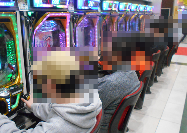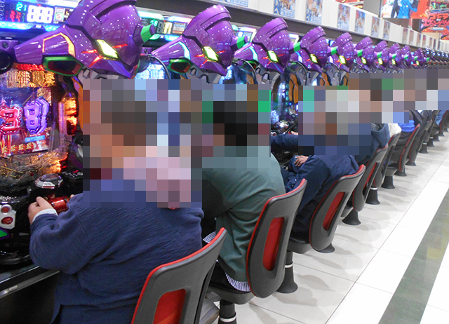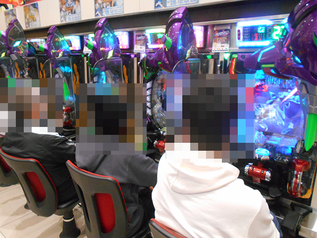 14時半過ぎはほとんど空き台はなく、うれしそうに遊技をおこなうプレイヤーがズラリと並んでいた。