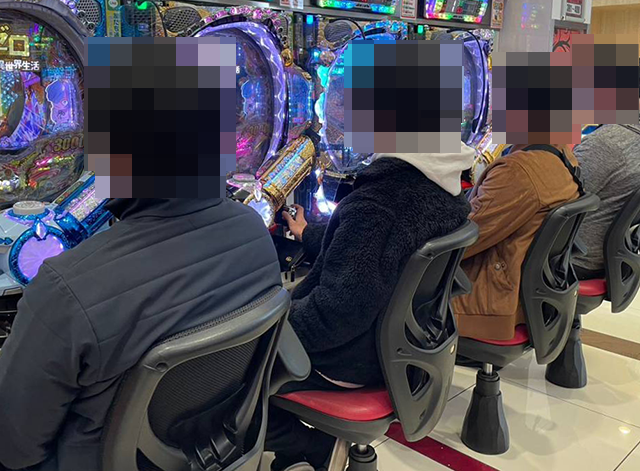 取材時はすべての台が埋まっており、持ち玉で遊技をおこなう姿があった。