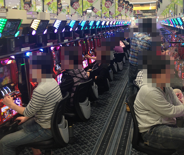 4円パチンコの「CR牙狼 魔戒ノ花」も安定した人気をみせており、楽しげな様子の人も多数。