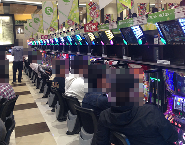 5円パチスロも定番のジャグラーシリーズをはじめ、「パチスロ化物語」や新台の「アステカ-太陽の紋章-」など、幅広い機種が支持を得ていた。
