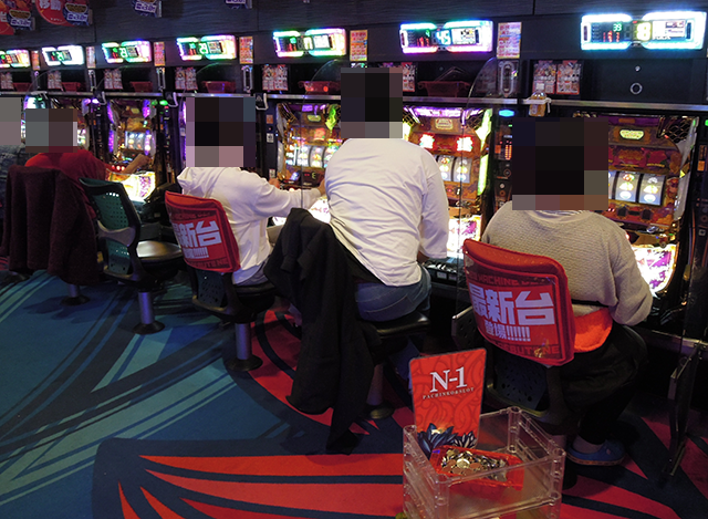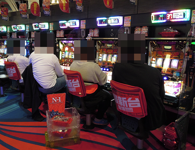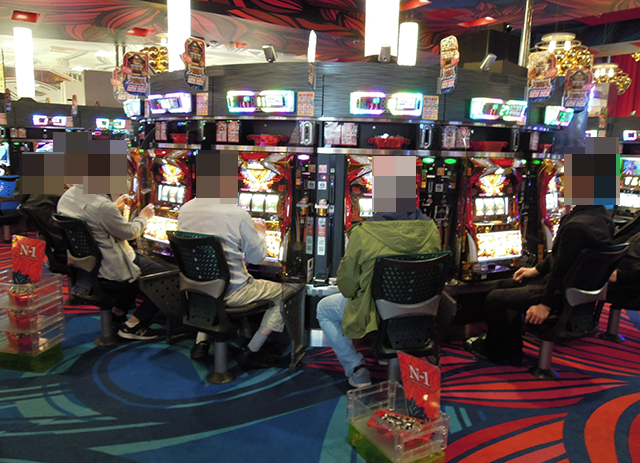 店内には大勢のプレイヤーが集まっており、パチンコとパチスロの両方がにぎわっていた。