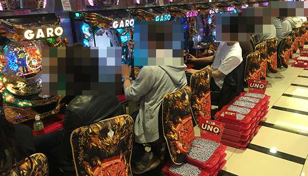 夕方頃のパチンコでは、「CR牙狼 魔戒ノ花」の盛り上がりの大きさがとくに印象に残っている。満足そうなプレイヤーも多く、明るい表情は魅力的に映った。
