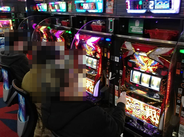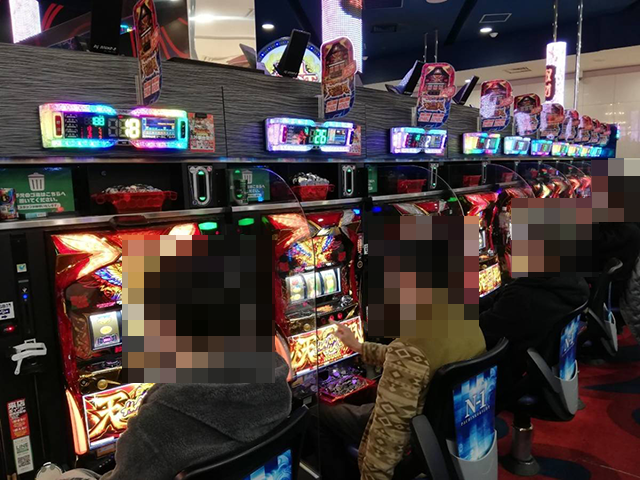 14時頃にパチスロをみると、明るい表情で遊技をおこなっているプレイヤーが多く、随所で華やかなシーンがみられた。