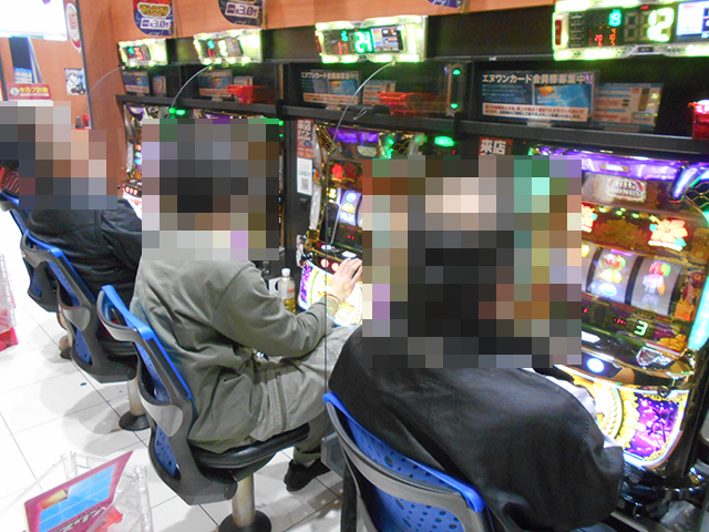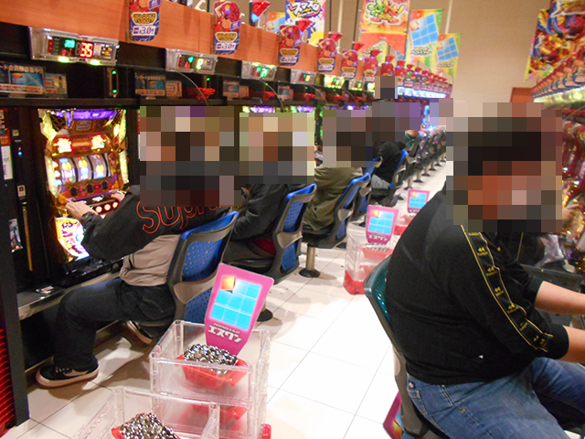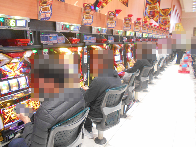 取材時に空き台はなく、うれしそうに遊技をおこなうプレイヤーが並んでいる状況。
