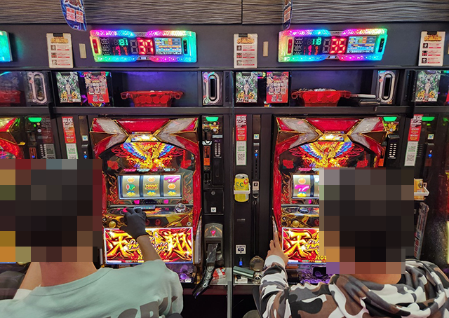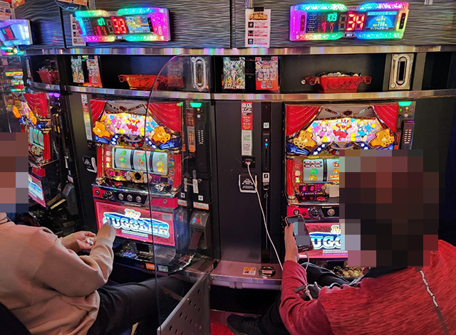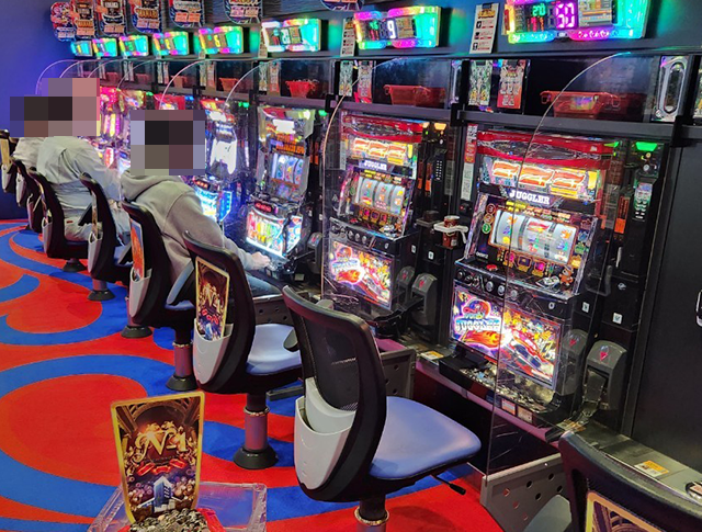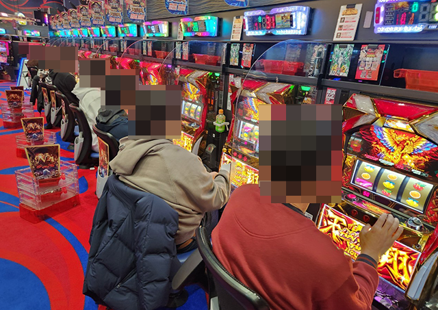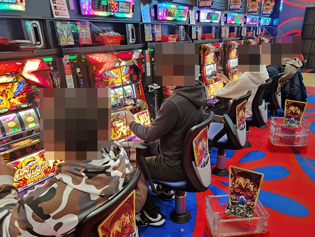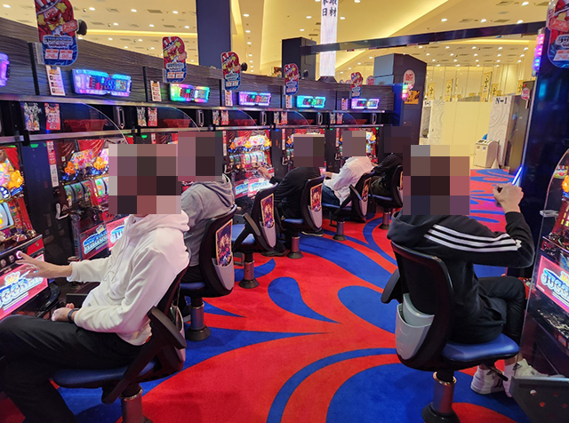 ホールには大勢のプレイヤーが集まっており、パチンコとパチスロの両方が大にぎわい!