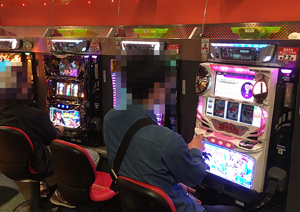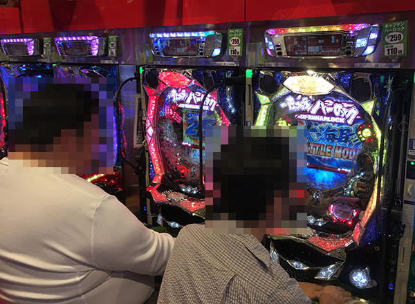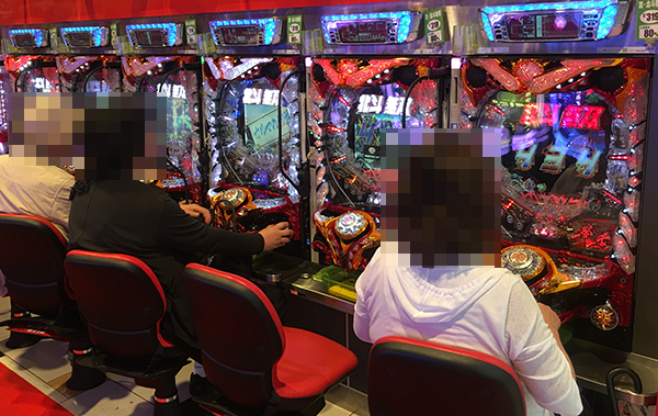 ホール内をみてみると、貸し玉料金を問わずに、さまざまな場所に遊技を楽しむプレイヤーの姿があった。