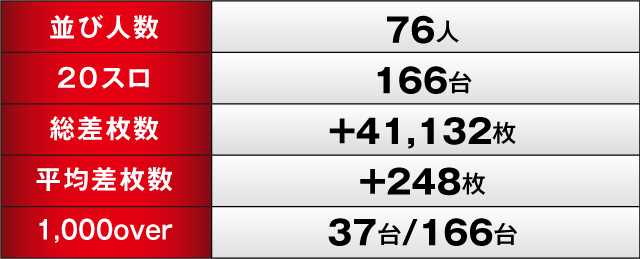 新たに多くの「英雄」が誕生した結果、総差枚数は+41,132枚で圧倒的な勝利となった。1,000overの数値も37と、デビュー戦を飾るにふさわしい成績を残した。ぜひ、このデビュー戦の勢いを続く第2戦、第3戦と継続してもらいたい。ユーザーの諸君も同ホールの情報を見逃さないよう、随時チェックしておくことをオススメする。