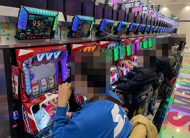 はじめに目をひかれたのは、ほぼ満席であった「パチスロ 革命機ヴァルヴレイヴ」だ!