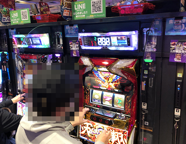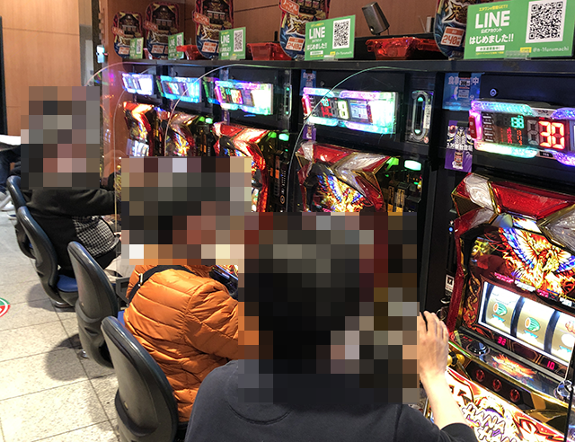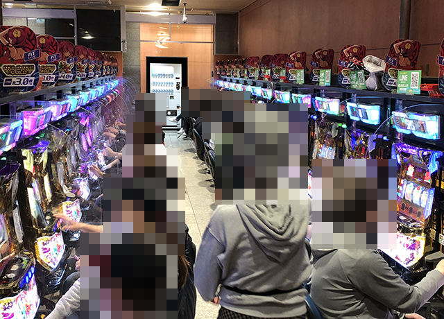 取材時のホールには、たくさんのプレイヤーがおり、パチンコとパチスロの両方で、楽しそうに過ごしていた。
