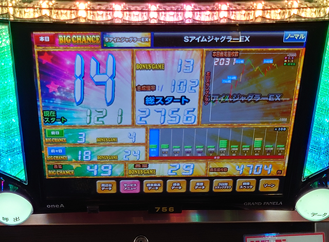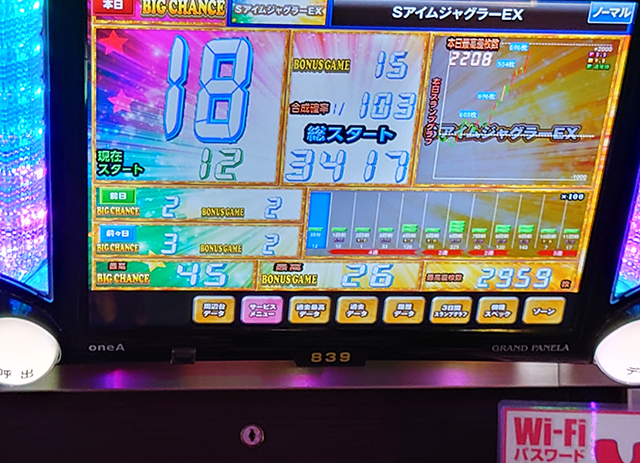 『アイムジャグラーEX』も複数の台に30回以上のボーナス回数がついていた。