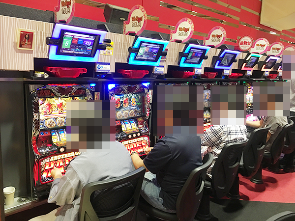 ボーナスタイプのジャグラーシリーズも活況。パチスロの楽しさを満喫しているといった姿もあり、明るい雰囲気であった。