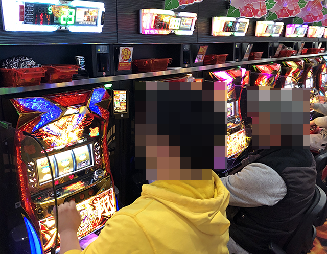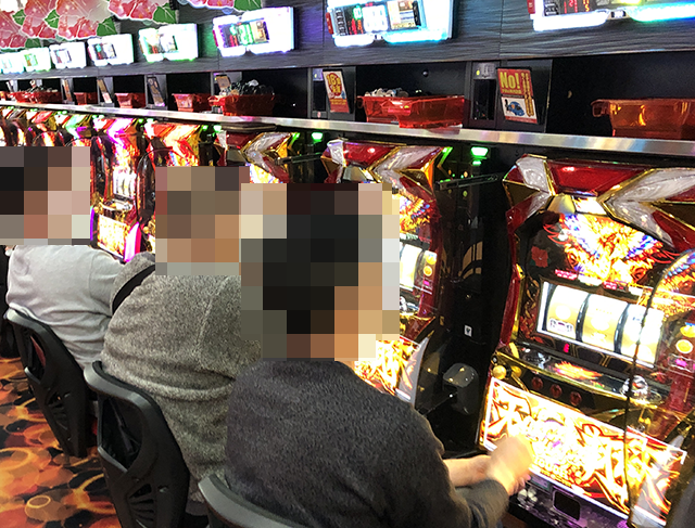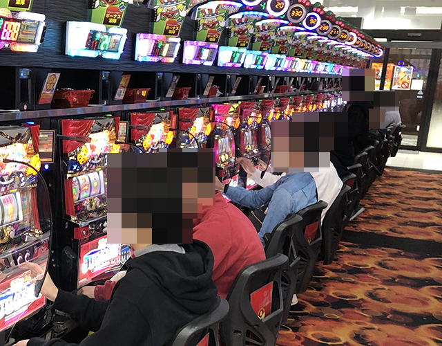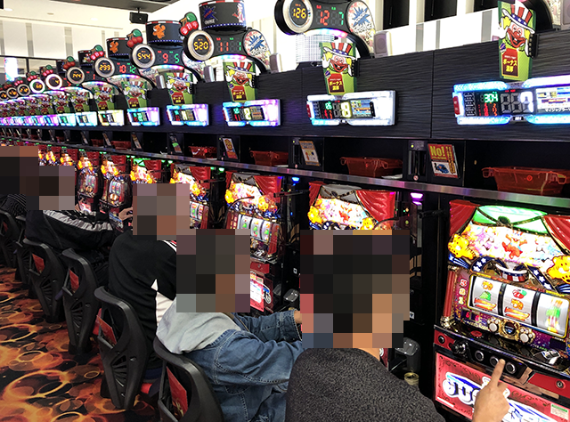 さまざまな機種に遊技を楽しむプレイヤーがおり、にぎわっている場所がいくつもあった。