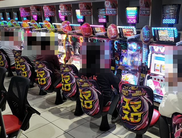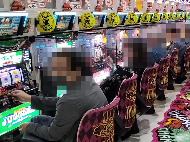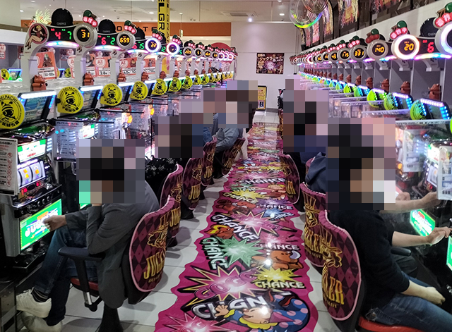 ジャグラーシリーズ以外でも、さまざまな機種でうれしそうに遊技をおこなう姿を確認。