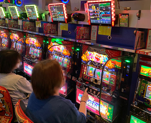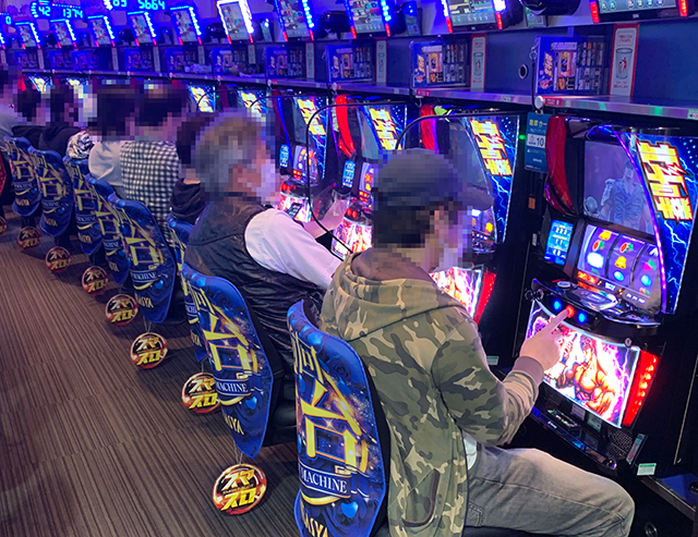 しばらくパチスロコーナーの動向を注視していたぱちタウン取材班だが、やがてある1列の挙動に気づく。