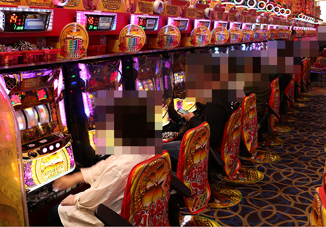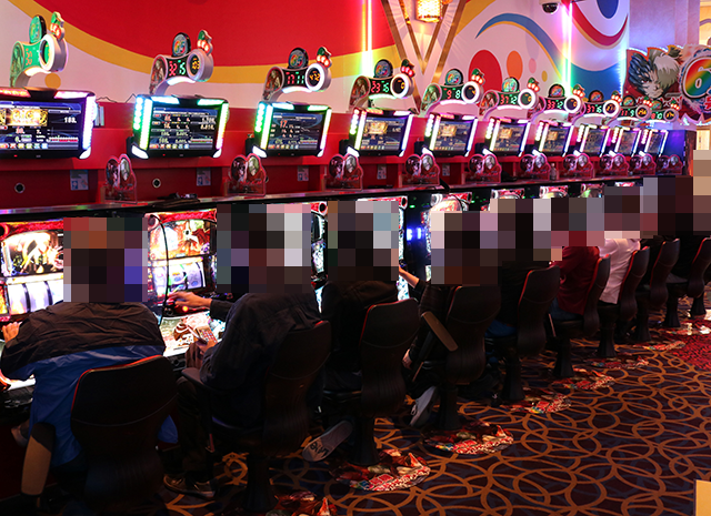 1000台以上の遊技台が設置された広いホール内には、多くのプレイヤーが集合。