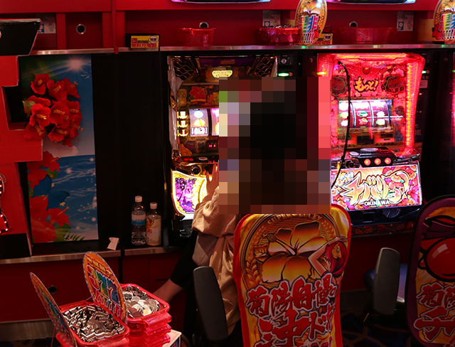 笑顔のプレイヤーは「パチスロ 新鬼武者2」でも目撃。