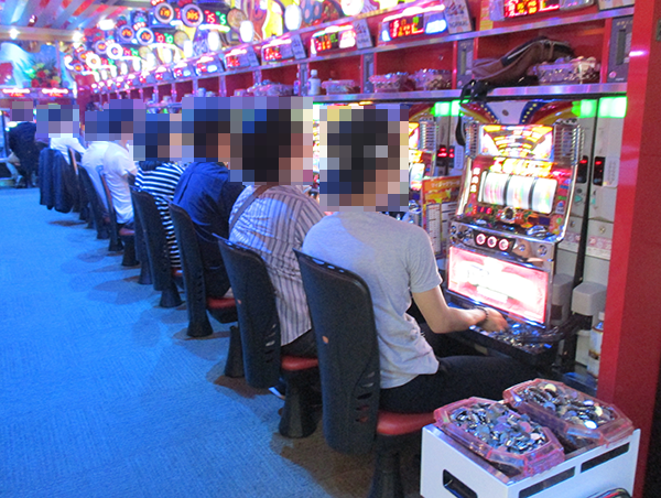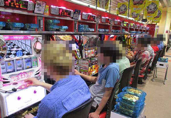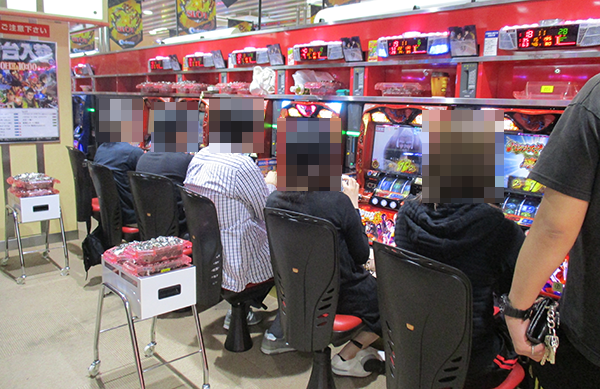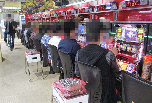 15時を過ぎた頃の20円パチスロで活気が感じられたのは「バジリスク~甲賀忍法帖~絆」と「パチスロ北斗の拳 強敵」。今回の取材のなかで主役と呼べるほどに盛り上がっており、プレイヤーのしあわせそうな表情も印象的であった。