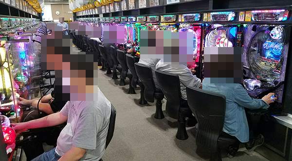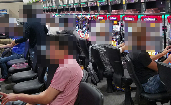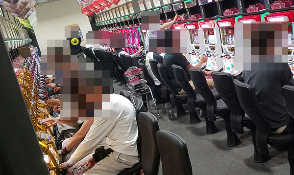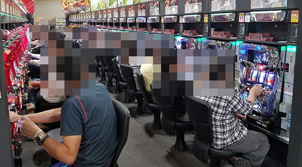 「パチスロ北斗の拳 強敵」や「ミリオンゴッド-神々の凱旋-」、「バジリスク~甲賀忍法帖~絆」などの稼働率も高く、ほぼ満席となっていた。