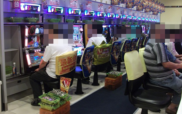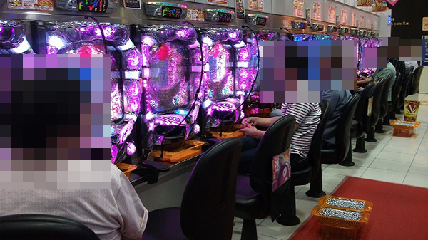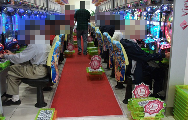 パチンコは1円パチンコの設置台数も多く、にぎわいが大きい。