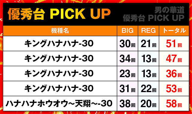 「キングハナハナ-30」からは4台、「ハナハナホウオウ~天翔~-30」からは1台をチョイス。