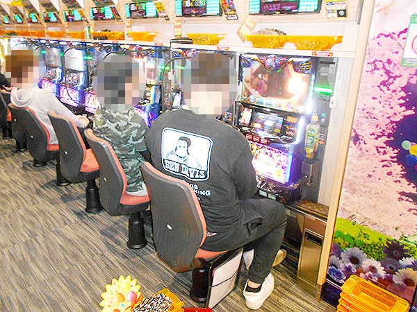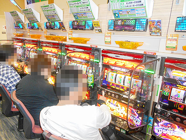 500円/89枚パチスロの稼働も高い。楽しそうにレバーを叩くプレイヤーの姿を複数目撃している。