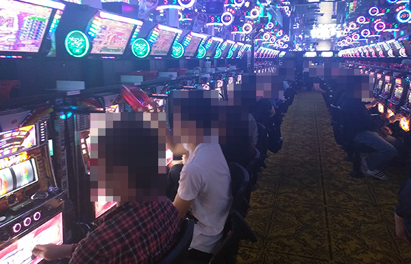 パチンコ・パチスロともにプレイヤーたちの充実感に満ちていた「イーグル アールワン 十三駅東口店」。