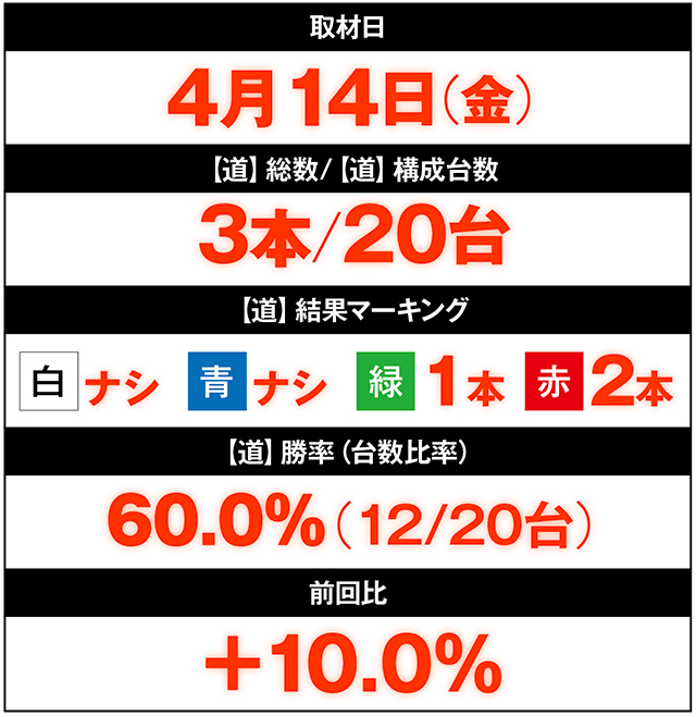 それもそのはず、作戦の「つかさ南高江店」は、【道】勝率95.4%や75.0%など、尋常ならざる結果を生み出しているお店だから。