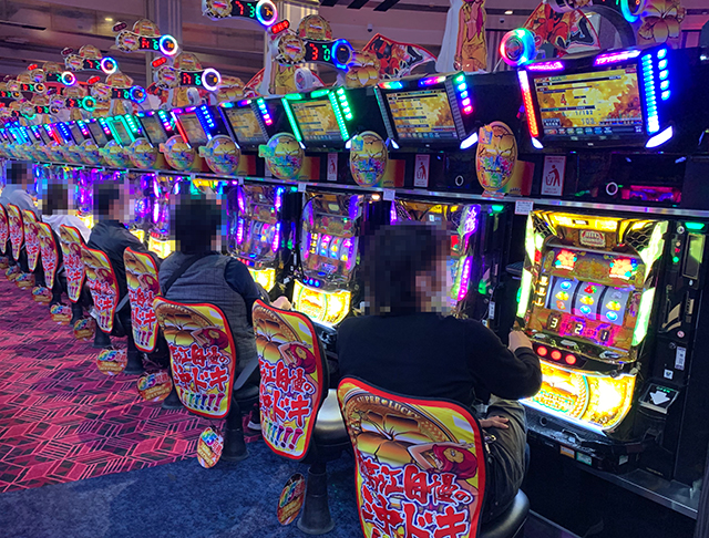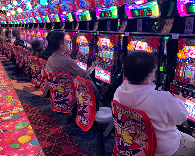 朝から大きな賑わいを見せたパチスロコーナー。