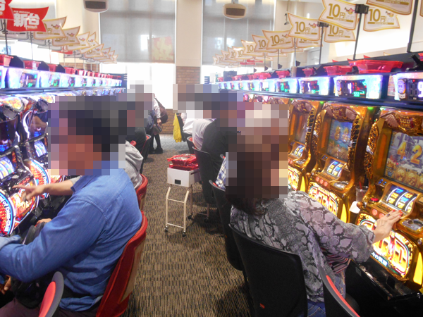 ほかにも、10円パチスロの「ミリオンゴッド-神々の凱旋-」や5円パチスロの「SLOT魔法少女まどか☆マギカ」、2.5円パチスロの「パチスロ ルパン三世 ロイヤルロード~金海に染まる黄金神殿~」など、いたるところで活気のある光景が目についた。