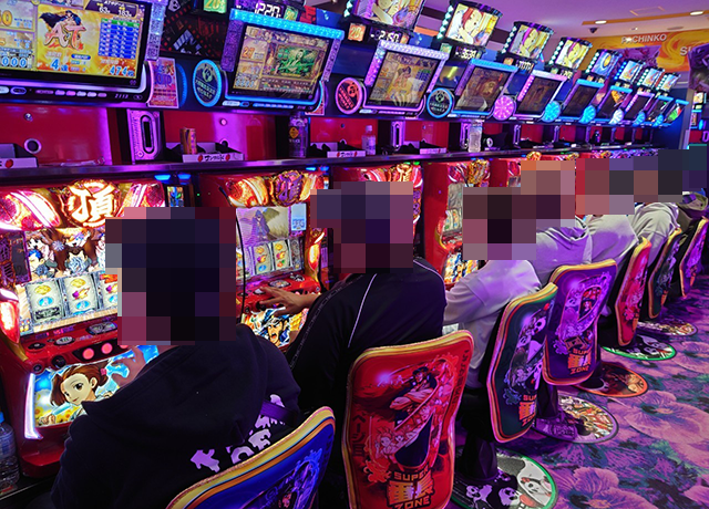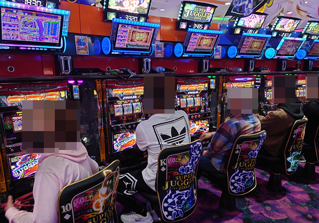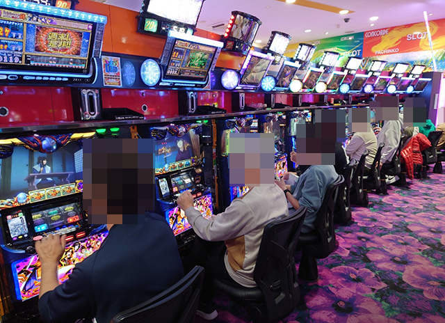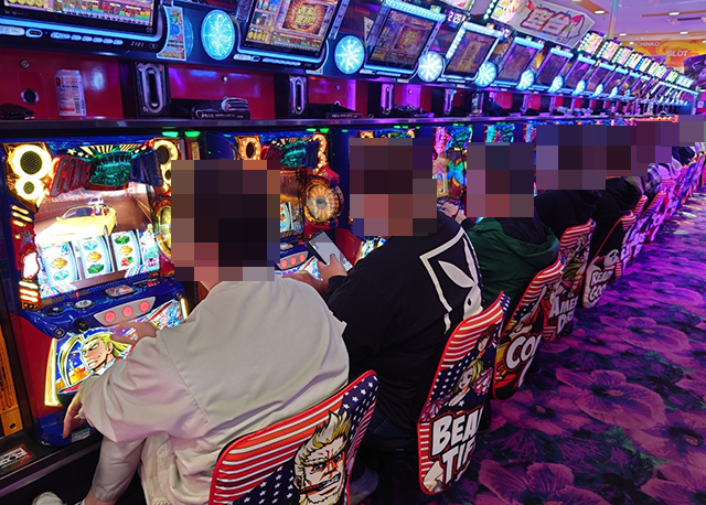 パチスロの状況をうかがうと、さまざまな機種でプレイヤーが遊技を楽しんでいた。