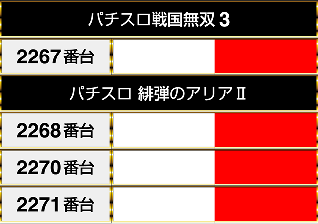 『パチスロ戦国無双3』の1台は『パチスロ 緋弾のアリアⅡ』の3台と連なってプラスptを記録した。