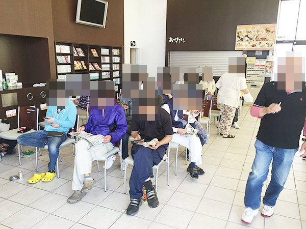 開店直後は、パチンコとパチスロのどちらのコーナーにも多くの人が向かっており、1000円/47枚パチスロの「バジリスク~甲賀忍法帖~絆」や4円パチンコの「CR牙狼 魔戒ノ花」などが満席に近い状態となっていた。
