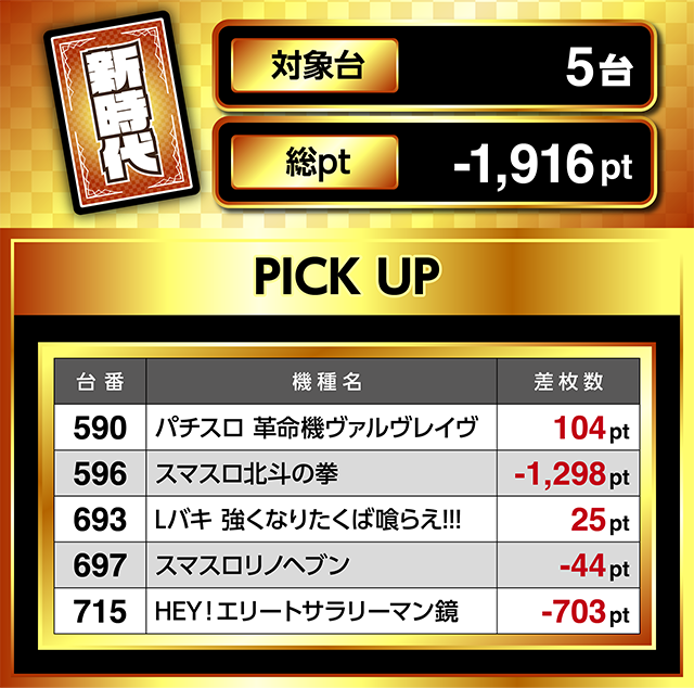 新時代は、最新機種の「スマスロ北斗の拳」をはじめ、設置されているスマスロの全5機種に注目台があった。