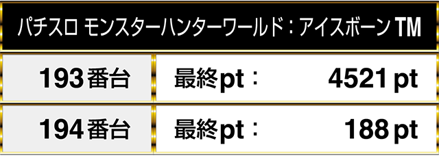 『パチスロ モンスターハンターワールド:アイスボーンTM』の193番台が4521pt!!