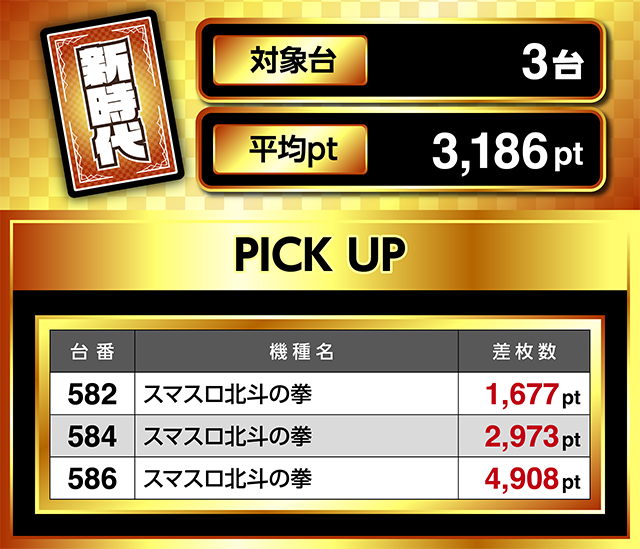 1,500pt以下の台はなく、586番台は4,908ptとなった。