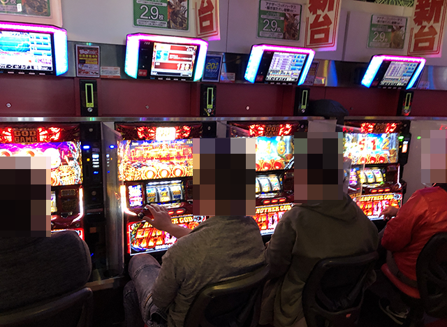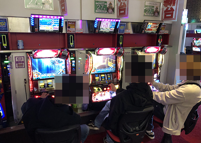 並列は、最新機種の「Lゴブリンスレイヤー」から定番機種の「マイジャグラーⅤ」まで、幅広い機種に注目台が並んだ。