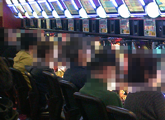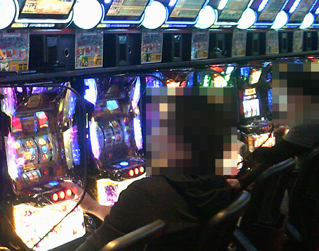 パチスロのシマをまわっていると、沖スロなどでうれしそうに遊技をおこなっているプレイヤーを目撃。