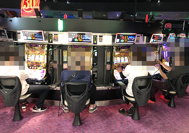 「沖ドキ!GOLD-30」においても、プレイヤーは遊技を満喫している様子。
