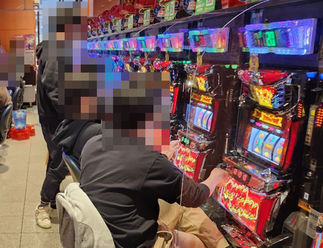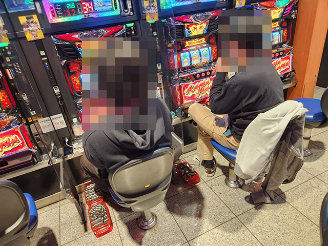15時半を過ぎた頃のパチスロは、沖スロを中心にさまざまな機種が盛況。