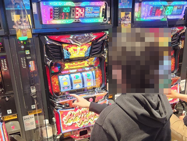 ホールには沖スロのみで構成されたシマがあり、「キングハナハナ-30」や「ハナハナホウオウ~天翔~-30」などが並んでいる。
