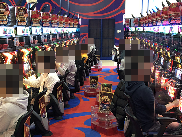 遊技を楽しむプレイヤーが並んでおり、ほぼ満席となるほどに好評。
