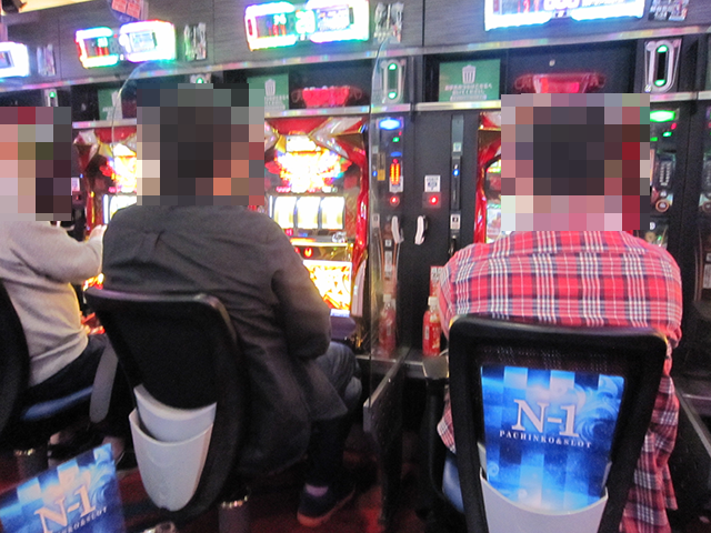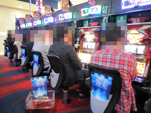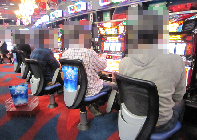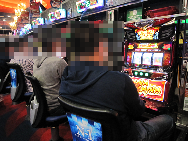 15時半過ぎのパチスロコーナーでは、ハナハナシリーズが人気を集めていた。